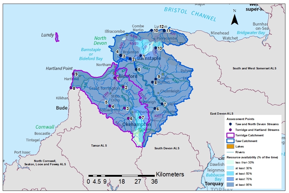 | 8 Welcombe Mouth | Water may be available at all flows subject to local assessment. New licences could be considered. | No | Any new surface water abstraction will have a HoF that applies at a suitable gauging station or a local HoF will apply. |