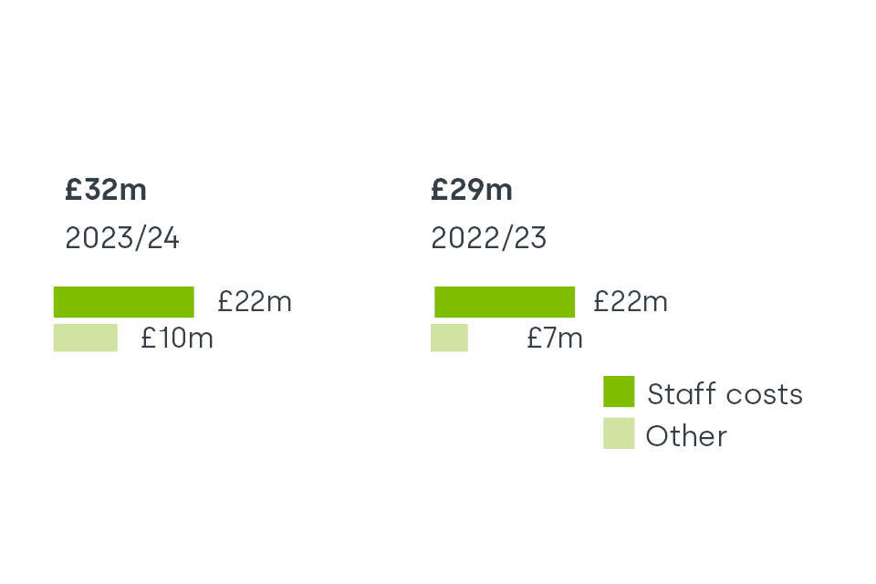 Net expenditure for the year was £3,005 million (2022/23: £2,700 million), within the updated supplementary estimate envelope of £3,014 million (2022/23: £2,833 million). Capital investment was £2,390 million (2022/23: £2,193 million) and our resource expenditure was £1,606 million (2022/23: £1,566 million).