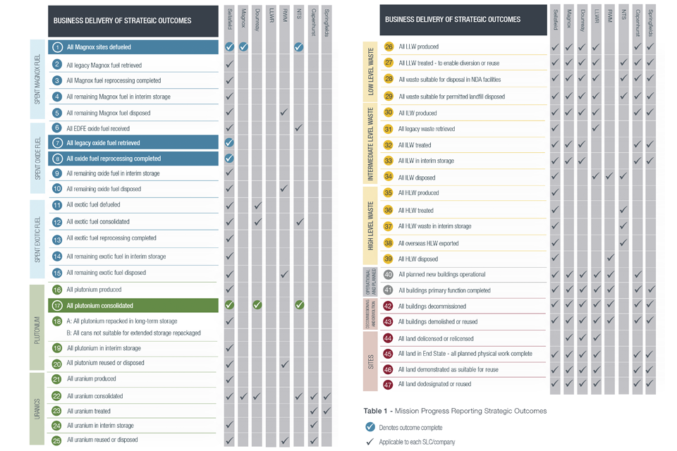 To demonstrate the progress we have made we have developed an approach to mission reporting. This tracks our progress in mission delivery since the NDA’s inception and is summarised in the recently published Mission Progress Report (ref 8). This will be published every 5 years at a minimum alongside each Strategy. This document is currently being further developed to incorporate financial and risk information and other performance metrics.