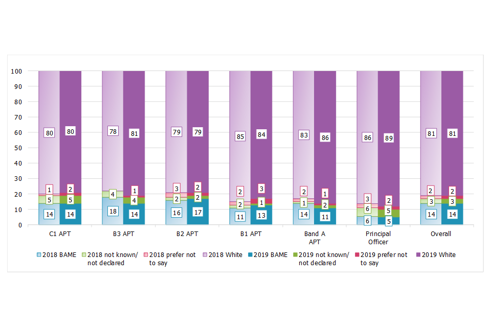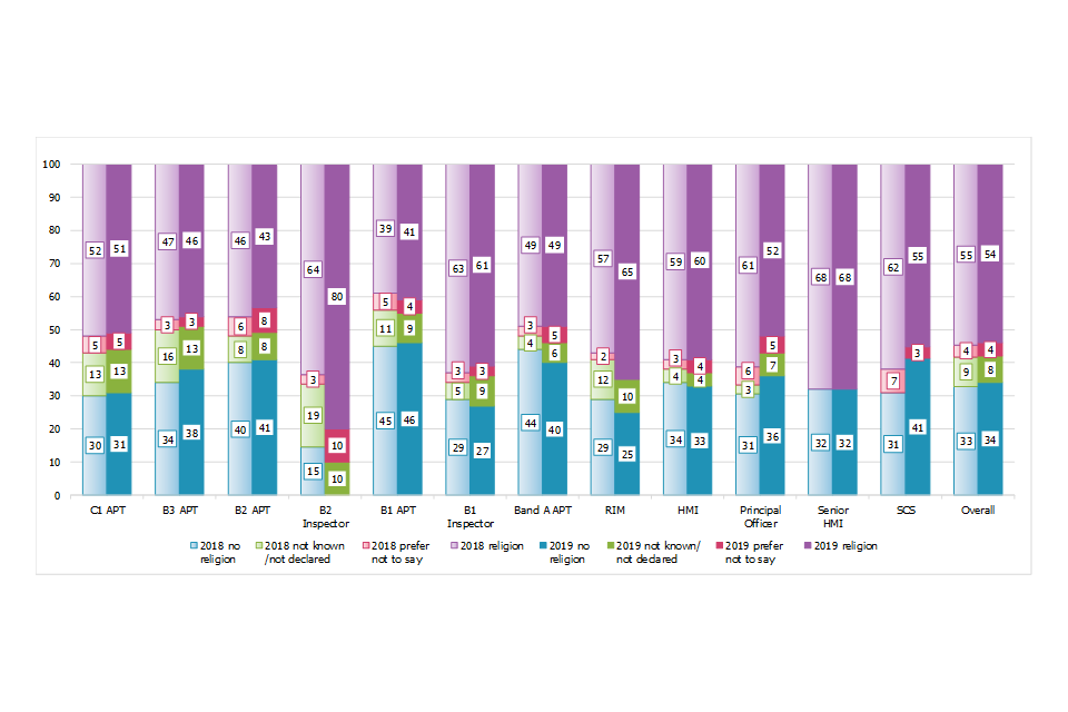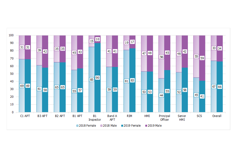 | Grade | Total number of employees | C1 APT | B3 APT | B2 APT | B1 APT | B1 Inspector | Band A | APT | RIM | HMI | Principal Officer | Senior HMI | SCS |