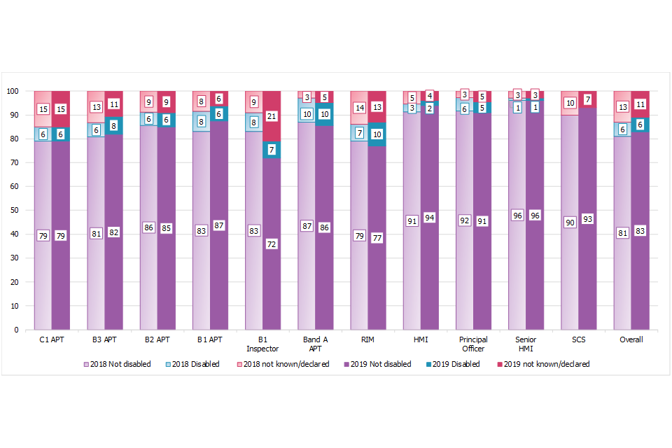 Because the B2 inspector grade is only a legacy grade, the numbers remaining within this grade are very low. As such, we have removed them from the main report, but their protected characteristics are shown below.