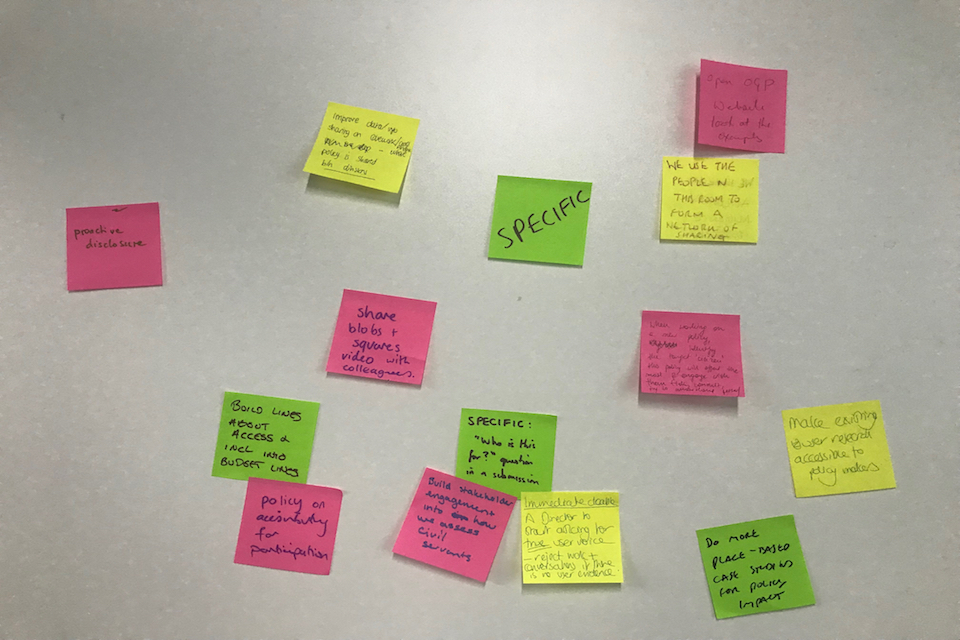 With a small but dedicated group of policymakers from DWP, MHCLG, DCMS, Greater Manchester Authority, Scottish Government, civil society member from Involve and Demsoc, and researchers from the University of Manchester, we conducted a one-day workshop in Manchester to explore different dimensions of open policy and develop a set of actions we could start using at different stages of the policymaking process.