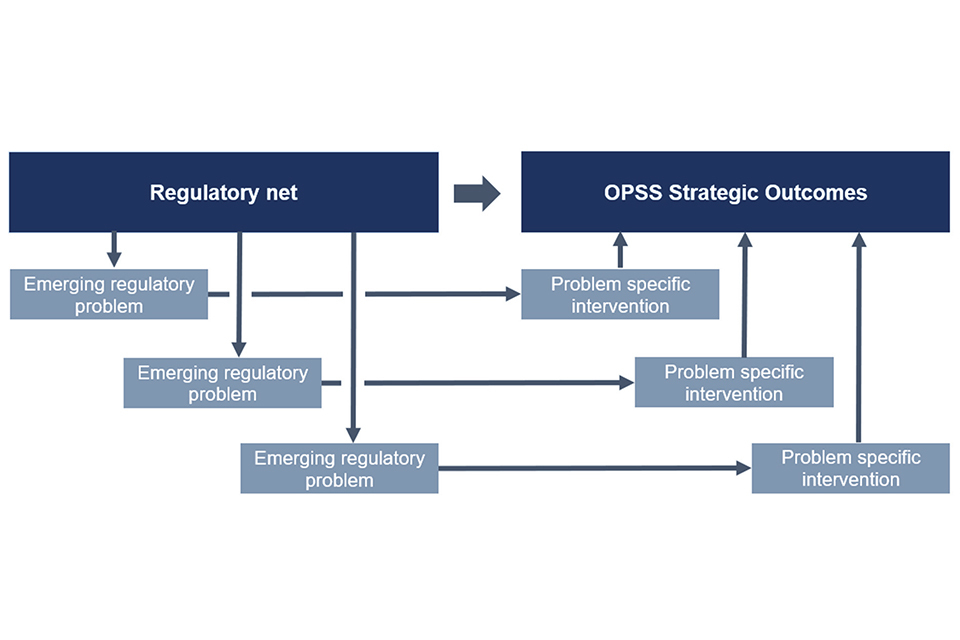 Figure 2 – Illustration of how the OPSS strategic outcomes result from both ‘regulatory net’ activities as well as ‘problem’ specific interventions