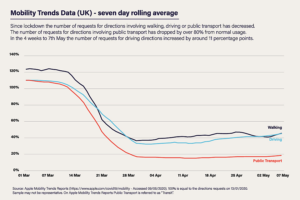 Figure 5: Mobility trends data for the UK based on a seven-day rolling average up to 7 May
