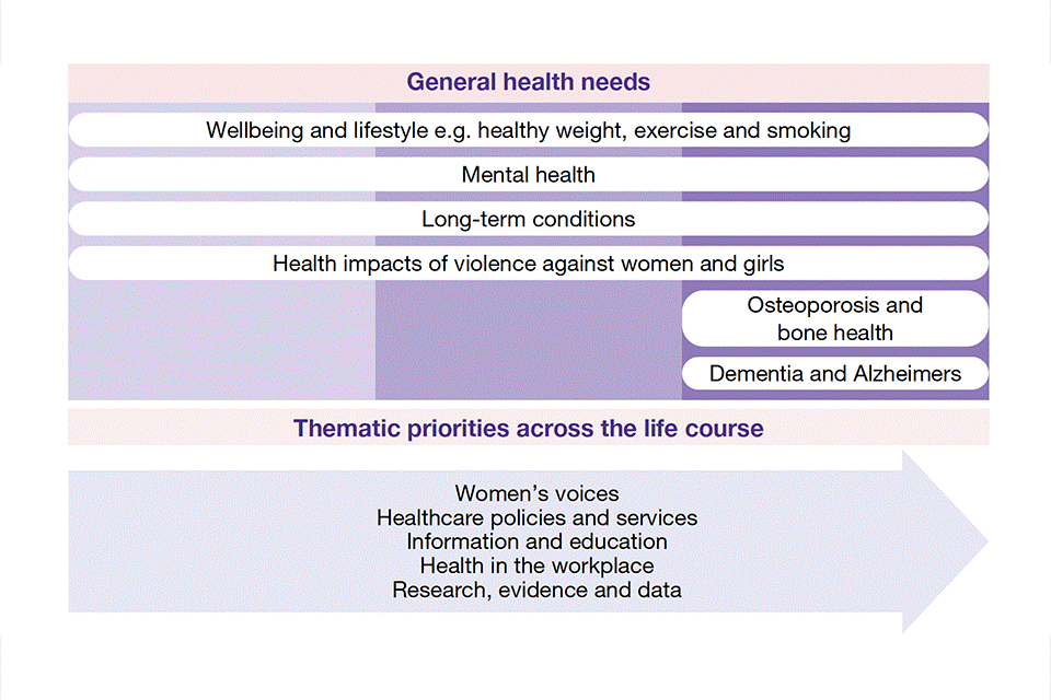 In this publication we have set out Our Vision for the Women’s Health Strategy. This vision provides a new strategic framework for women’s health, based around a life course approach and the five key themes which connect different aspects of women and girls’ health, as well as different conditions and issues which arise at different points during the life course.