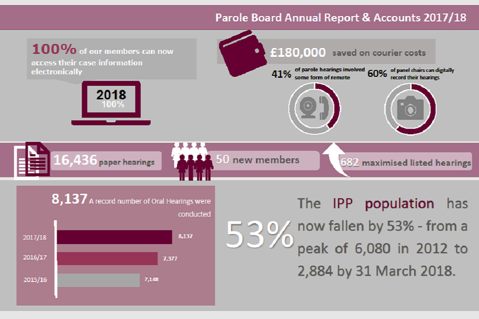 The Parole Board laid before Parliament its Annual Report and Accounts for 2017/18 on Thursday 19 July 2018.