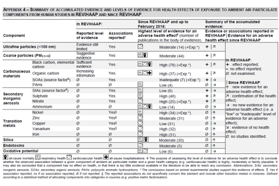 - nitrate and sulphate content of PM: the COMEAP (2015) statement noted these constituents as having “fairly consistent” associations with adverse health outcomes