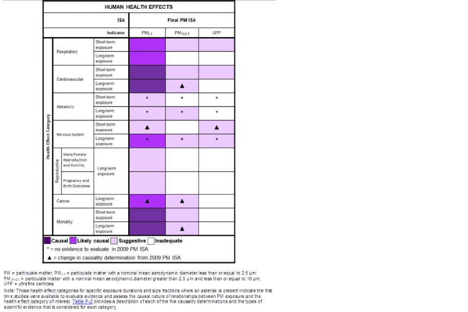 Figure 2. Overview of the conclusions reached by the USEPA report. Figure taken from USEPA’s Integrated Science Assessment (ISA) for Particulate Matter (USEPA, 2019)