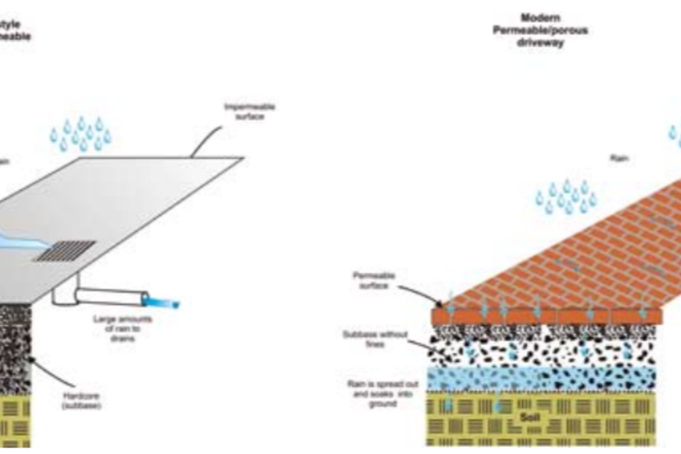 Permeable modern vs old style impermeable driveways