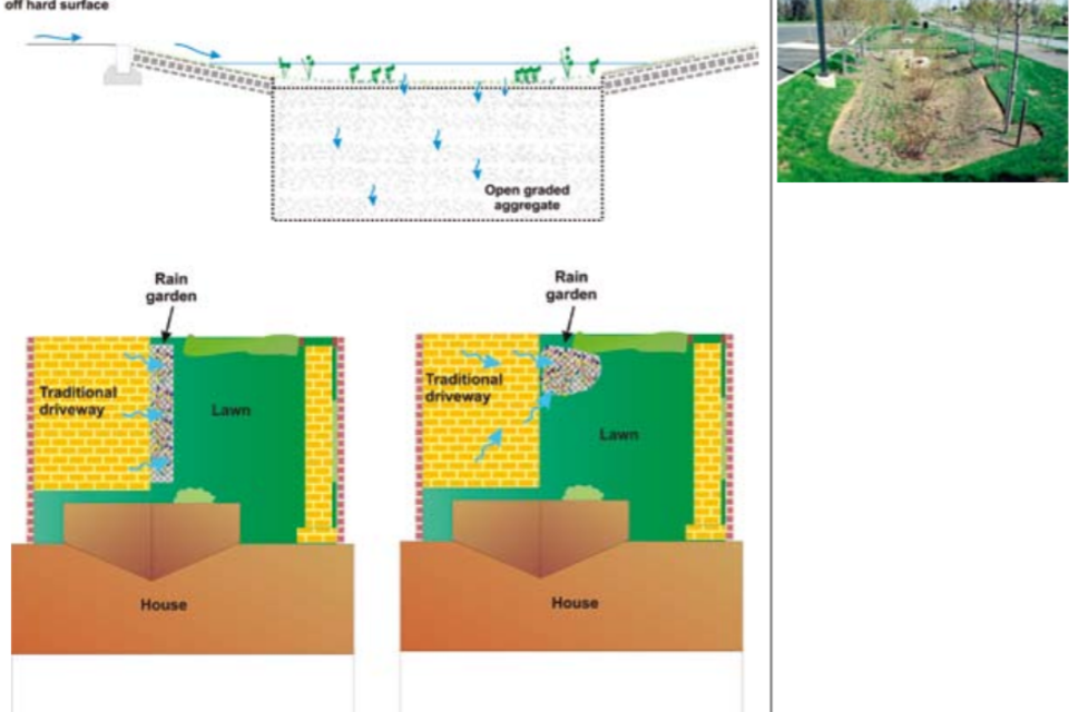 Rain gardens and soakaways