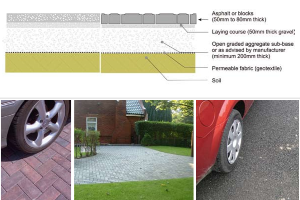 - using permeable block paving, porous asphalt or concrete