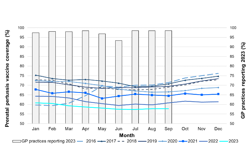 Prenatal pertussis vaccination coverage in England from July to September 2023