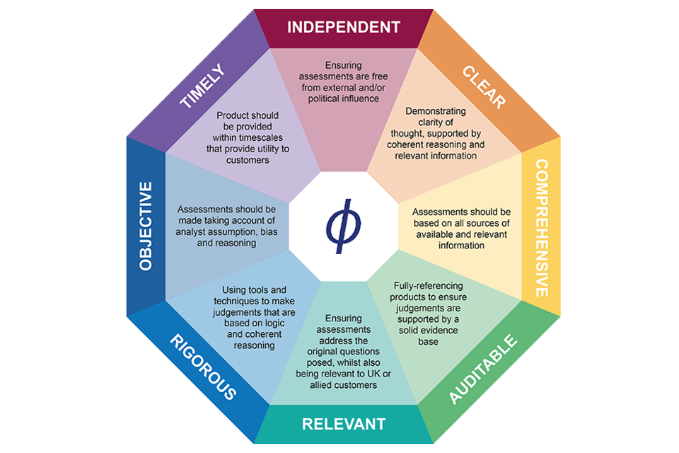 Common Analytical Standards ensure a consistent standard of rigour, integrity, language and best practice across the UK intelligence assessment community. The high-level standards set out below can be developed, and expanded upon, by individual assessment organisations to reflect their requirements and best procedures.