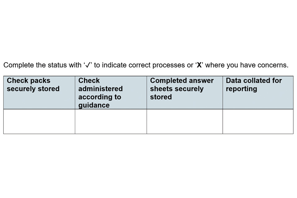 Ask the headteacher, or delegated member of staff, to show you their delivery note and where the check materials are stored. Check that: