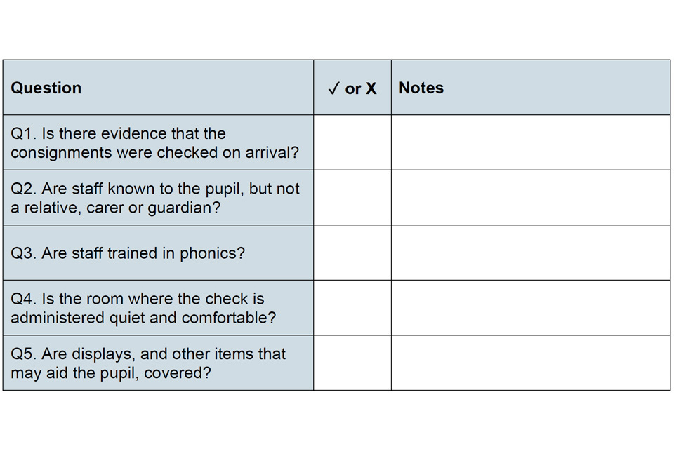 - Phonics screening check administration guidance (in particular the section on ‘Security of check materials’)