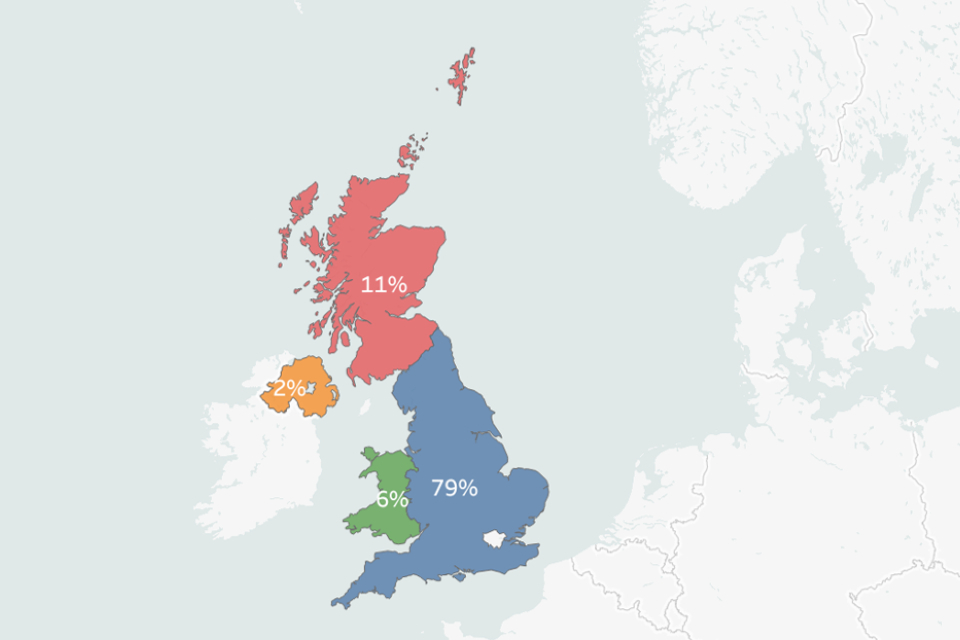 A significant number of Government roles have been relocated to Scotland, Wales and Northern Ireland, representing 18% of all role relocations. This includes 93 (or 24% of) relocated Senior Civil Service roles. 11% of roles have gone to Scotland, 6% to Wales and 2% to Northern Ireland.