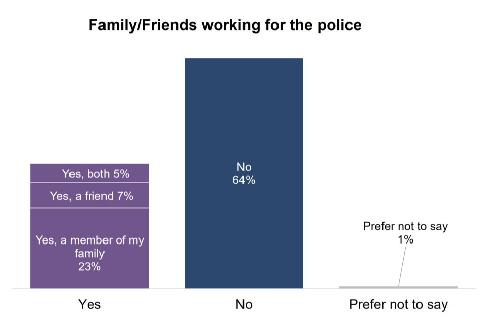 More than a third of new officers (35%) had either a family member or friend who had worked as a police officer or police staff member. Of these, the majority (28%) had a family connection into policing.