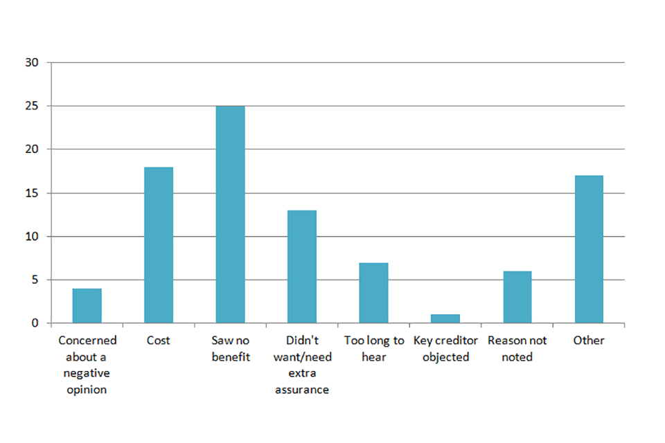 As noted in the report, uptake of the Pool has been low. Some key stakeholders suggested making referral to the Pool mandatory in order to provide greater assurance to creditors. Additionally, the review found that only 28% of SIP16 statements said that a viability review had been completed.