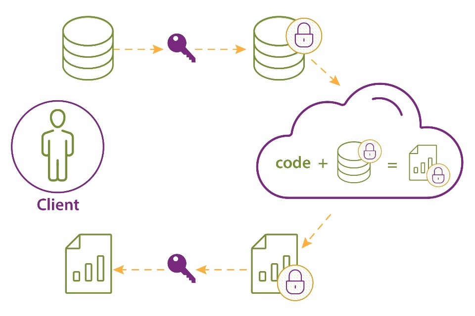HE protects data from being disclosed as it ensures that only parties with the decryption key can access the information. It can provide a level of guarantee to an organisation when outsourcing a computation in an untrusted setting. The processing party never learns about the “original” unencrypted data, the computation, or result of the computation.