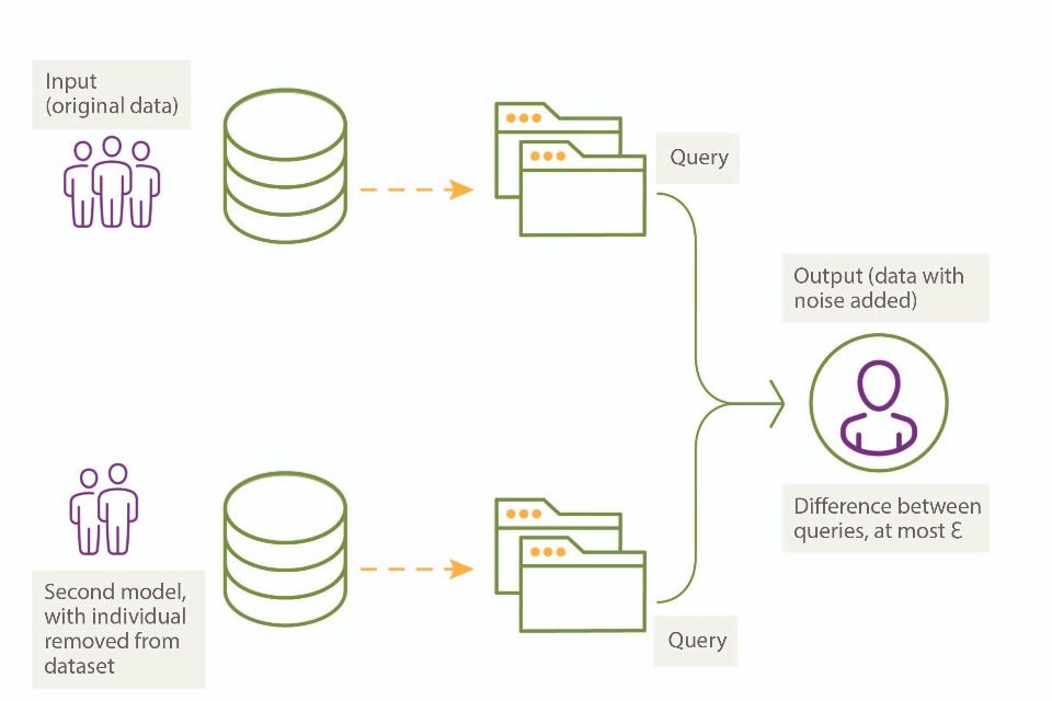 differential privacy: a formal mathematical approach to ensuring data privacy, which works by adding noise to either input data, or to the output it produces.