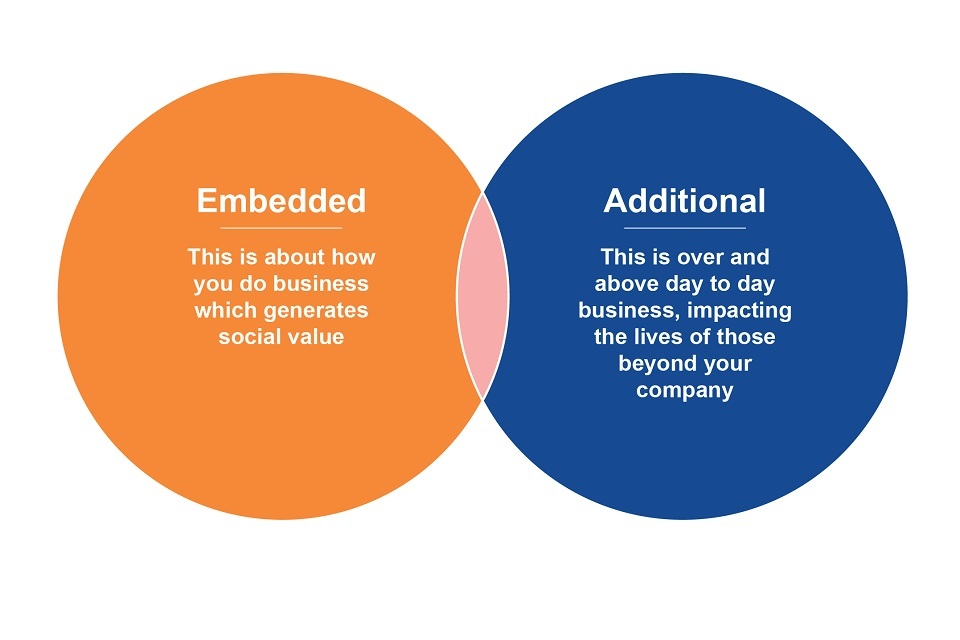 This is the social value that is gained purely as a by-product of having the workforce you need to deliver the work, through existing company activities or activities which would be expected of any responsible business.