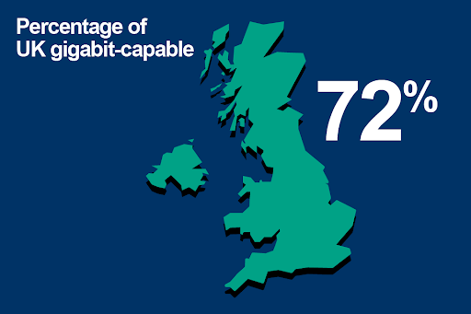Across the UK, more than 72% of premises are now able to access gigabit-capable broadband.