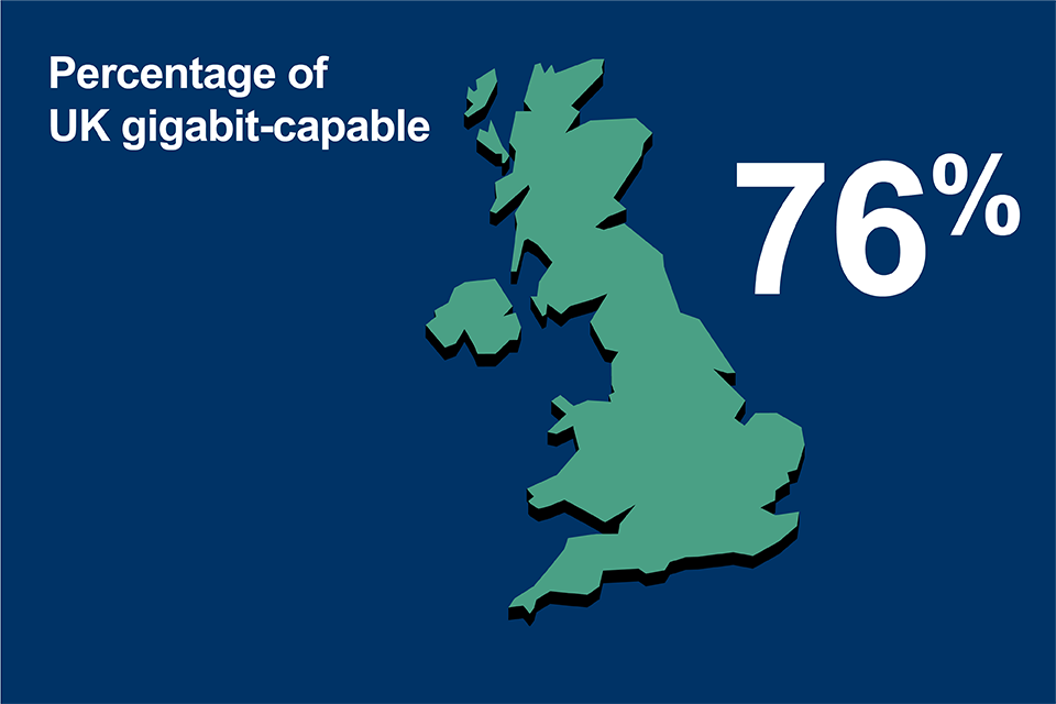 ThinkBroadband reports that 76% of UK premises are now able to access a gigabit-capable connection. On top of this, over 50% of UK premises are now covered by a full-fibre network, up from just 22% in April 2021, which demonstrates the pace and scale of network build.