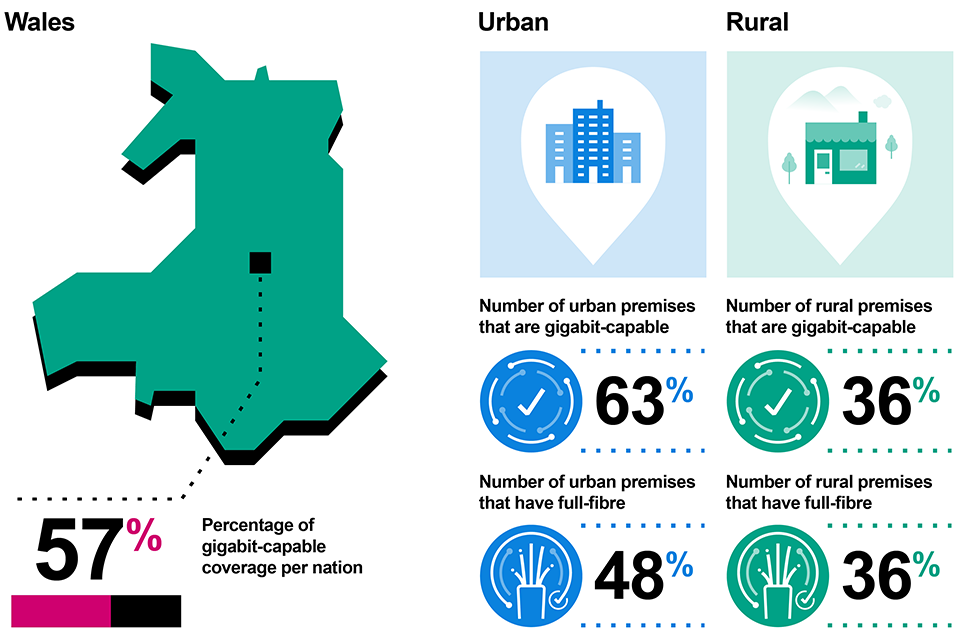 This section outlines the level of gigabit-capable coverage across the devolved nations and regions, in urban and rural areas, by supplier and by residential and business premises.