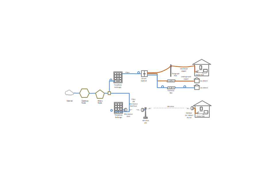 In order to illustrate the potential range of access points which may be used as appropriate product benchmarks, Figure 1 shows, as an example, network diagram with various forms of access in different network configurations.