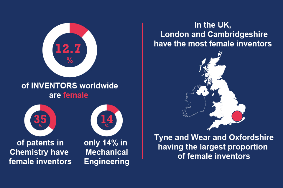 Women account for an ever-increasing proportion of patent inventors; historically, 2-3% of inventors worldwide were female, but this has risen since 1960 to reach 6.8% in 1998 and has almost doubled in the past 20 years to reach 12.7% in 2017. These statistics are inherently impacted by legacy workplace demographics, but positive progress is being made and women are now contributing to a much larger proportion of inventors with over one in five patent applications now having at least one female inventor. The technology areas that enjoy the greatest levels of female participation are Biotechnology, Pharmaceuticals and Organic Chemistry, with women contributing to the inventions of approximately half of the patent applications made in these fields in recent years. Our research focuses on trends over the past 20 years and provides a breakdown of female inventorship by country and by technology area. The role of female inventors, working individually or as part of a team of inventors, is also analysed.