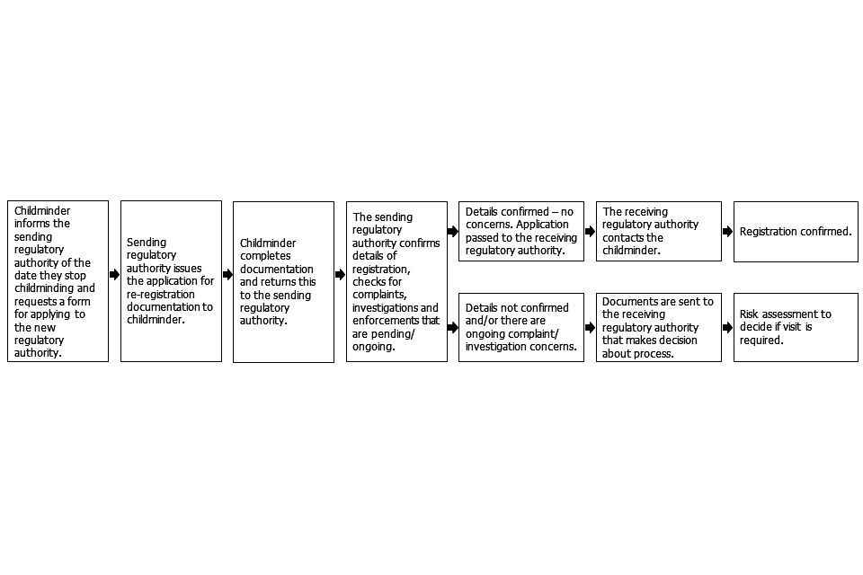 Ofsted will ensure that there is a procedure to share information about the registration of its childminders who move to an overseas command and apply to register with the MOD’s approved organisations. Ofsted has a procedure to enable childminders registered with the MOD and its approved organisations who move back to England and wish to childmind in England to register with Ofsted without completing the full registration process with Ofsted (see annex).