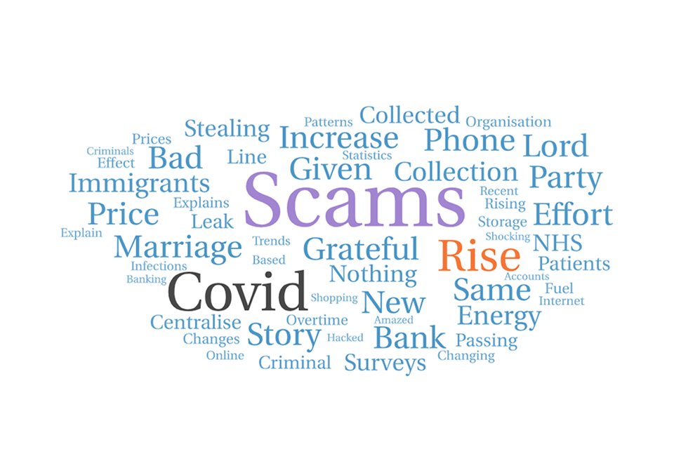 Image 3: Word cloud of public recall of data-related news stories – by UK adults who recall that the story was mainly negative, and have high digital familiarity.