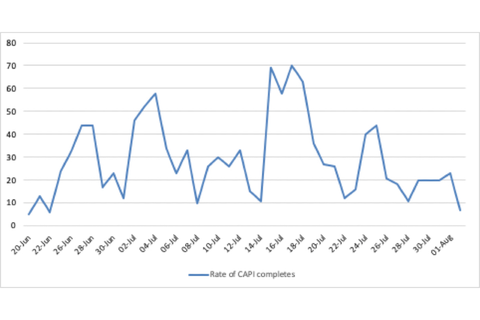 Line graph showing number of face-to-face CAPI surveys completed by date