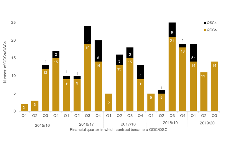 Figure 1: Number of QDCs/QSCs by financial quarter