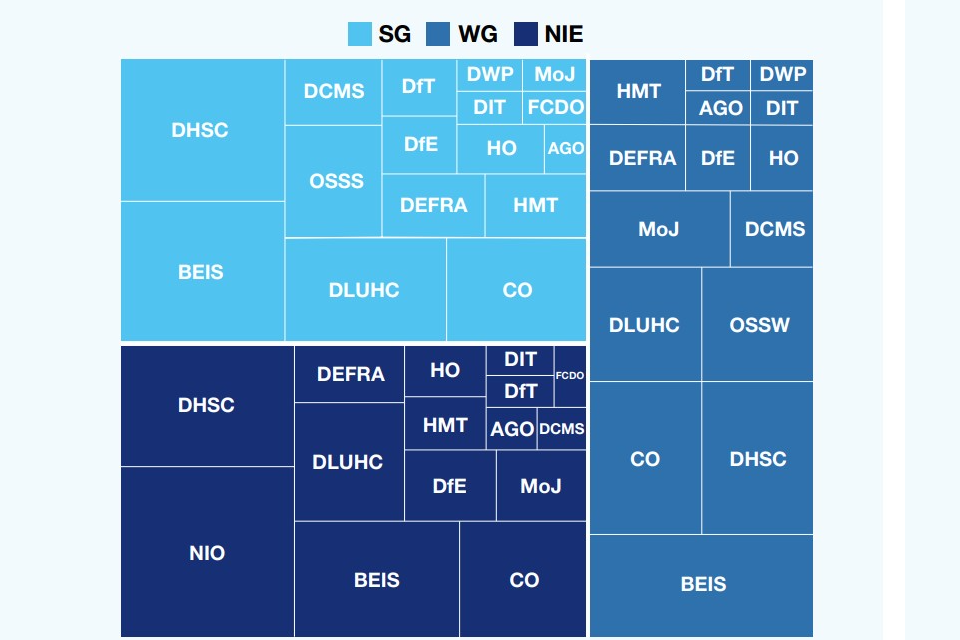Number of meetings between UK Government departments and Welsh Government (WG), Scottish Government (SG), or Northern Ireland Executive (NIE) in 2022.