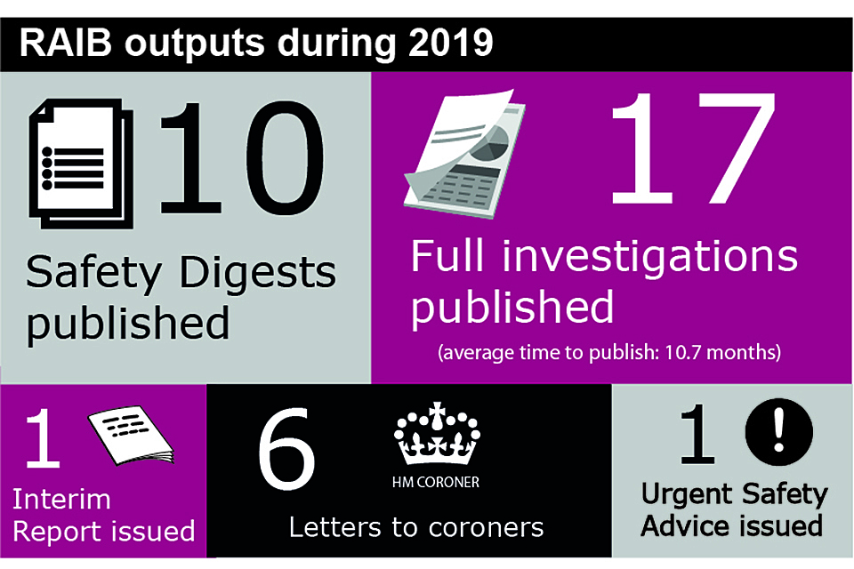 Table A1 lists all RAIB investigations published during 2019. Details of all investigations started by RAIB during 2019 are provided in table A2.