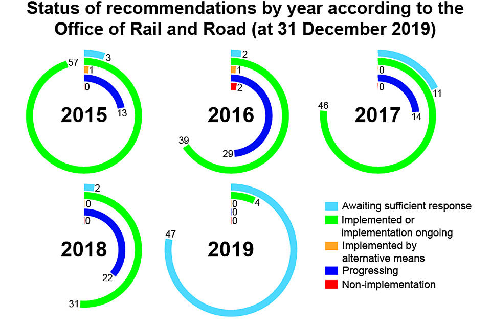 Since the end of 2019, further progress has been reported by the industry and the ORR has updated its assessment of the status of actions taken in response to RAIB’s recommendations. Shown below is an updated summary table based on information provided by ORR to RAIB on 3 March 2020.