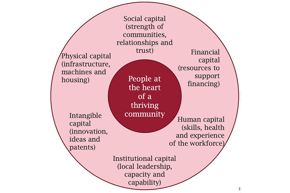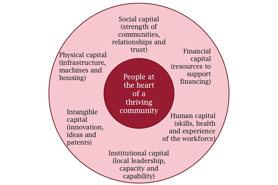 To drive towards these aims, several factors need to come together. These include six types of capital, as identified by HM government (2022): physical capital, human capital, financial capital, social capital, intangible capital and institutional capital. Existing evidence suggests that where these forms of capital and wider factors, including community infrastructure (a certain type of physical capital), come together, there can be a virtuous cycle of positive outcomes (HM government, 2022).
