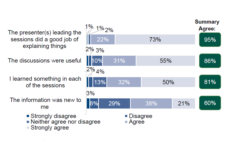 All components of the training evaluation were completed ahead of the third report on implementation[footnote 4] and hence have been reported previously. The key findings from this previous research were: