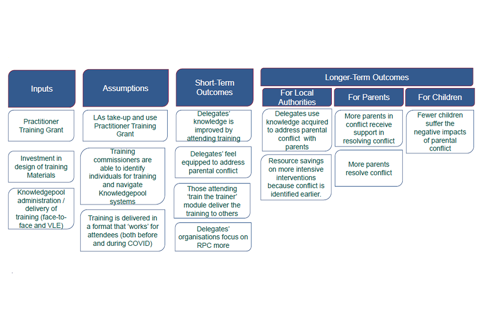 | Reducing Parental Conflict (RPC) programme | The Reducing Parental Conflict programme is the subject of this evaluation. It aims to help avoid the damage that parental conflict causes to children through the provision of evidence-based parental conflict support, training for practitioners working with families and enhancing local authority and partner services. |