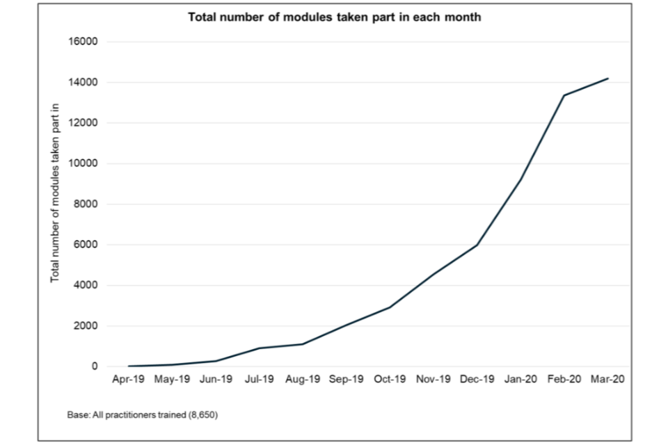 As part of the programme, local authorities could apply for a Practitioner Training (PT) grant to purchase places on this training. Nearly all local authorities confirmed they had taken up the PT grant ensuring a wide reach for the training.