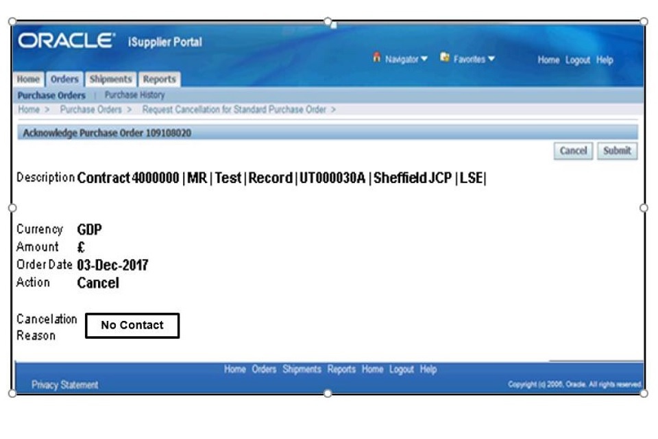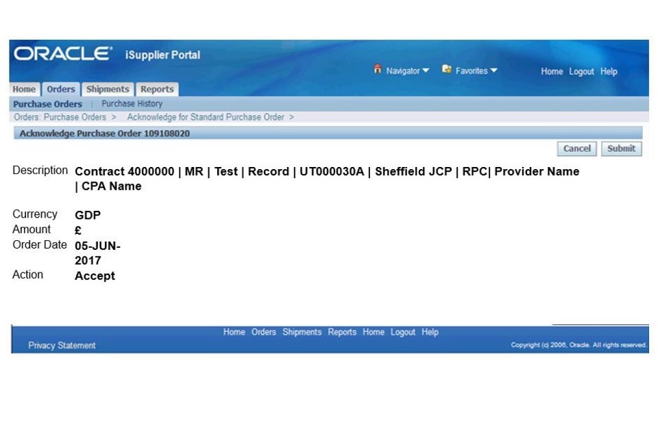 You will be informed that the purchase order has been acknowledged and you will be given the opportunity to return to purchase orders.