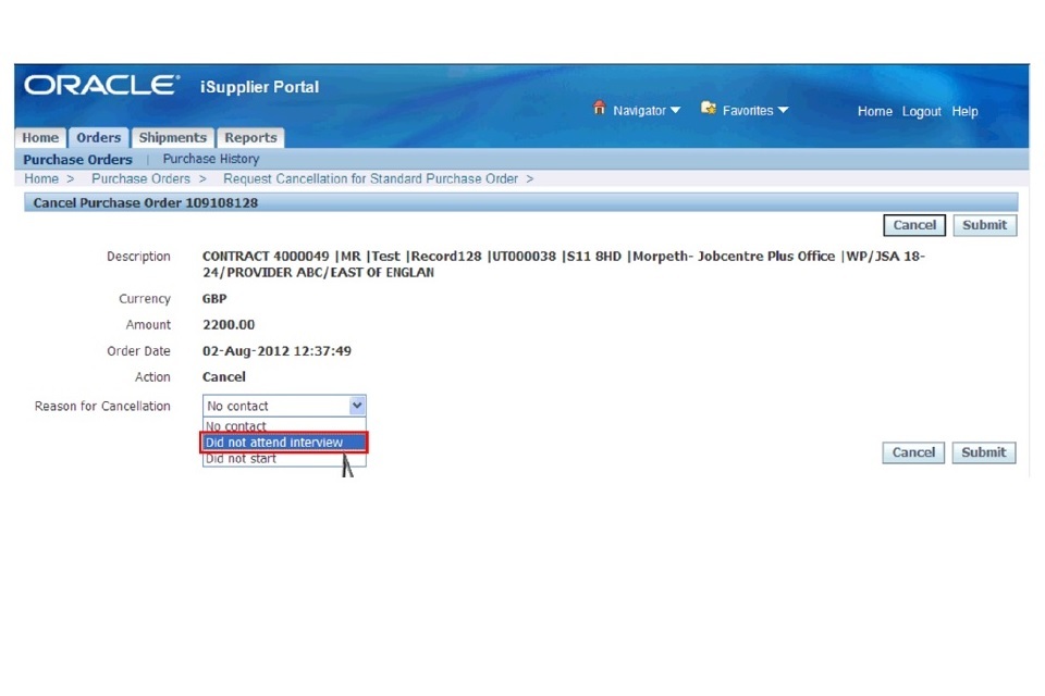 If the participant has been incorrectly referred by DWP Referral Team, select ‘Reject Entire Order’ button. You will then be taken to a summary screen where you will need to identify a reason for rejecting.