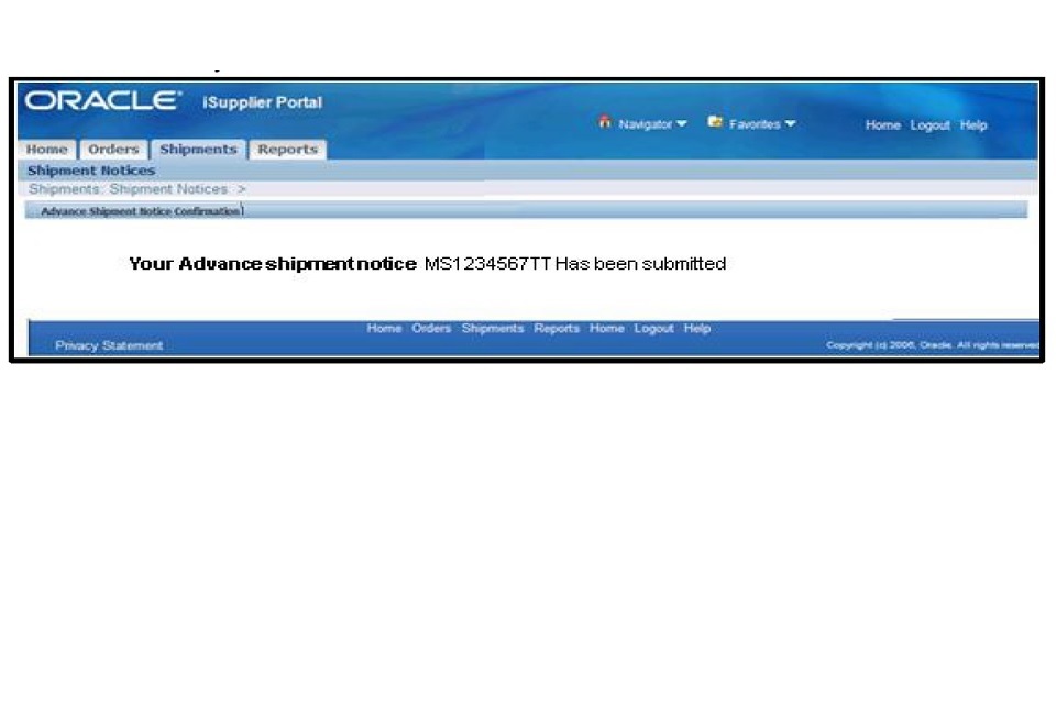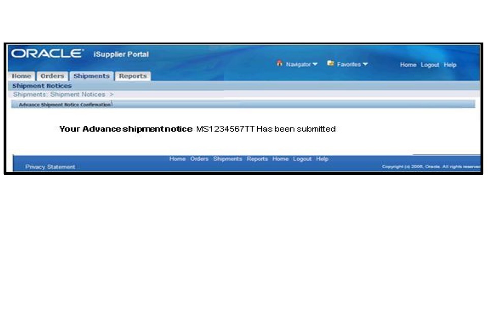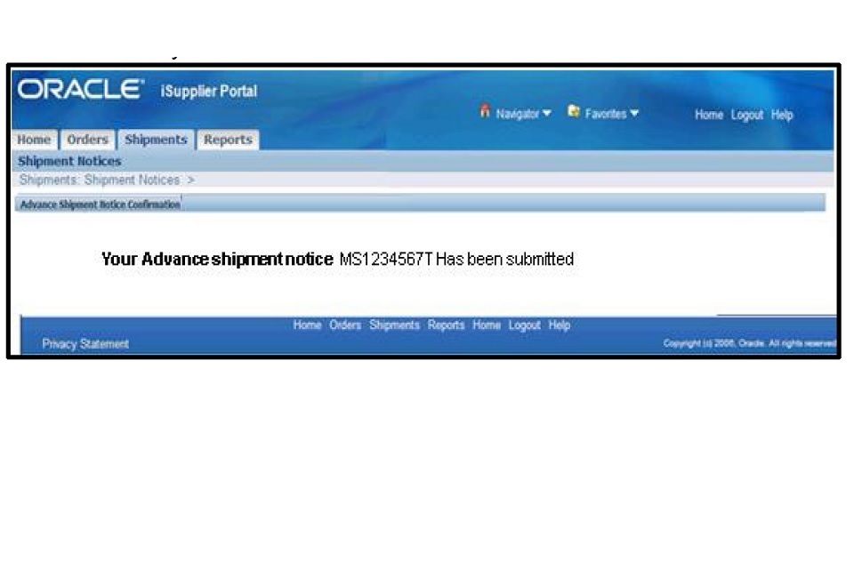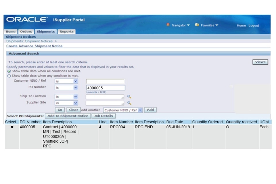 Select ‘Add to Shipment Notice’ button. The create shipment notice screen will now be displayed.