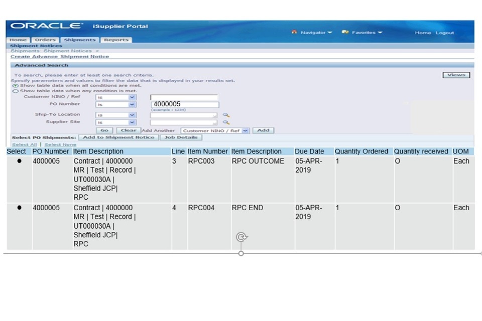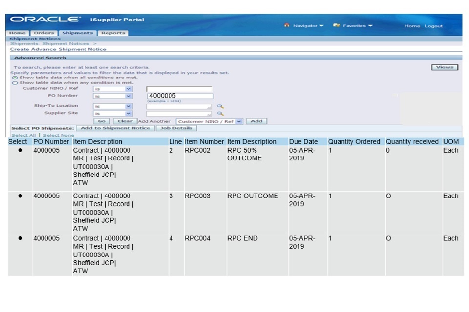 Select ‘Go’. You will now be presented with all the available lines for that PO number.