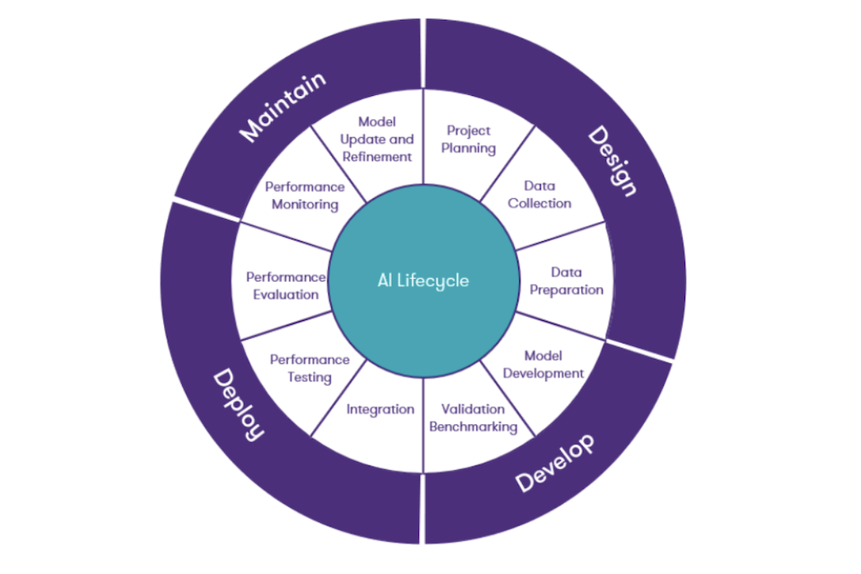The development phase of the AI lifecycle is where AI models are created and refined for specific tasks. This phase involves selecting appropriate algorithms, and training and evaluating the model’s performance. Iterative processes for model tuning and optimisation are conducted to enhance accuracy and robustness.