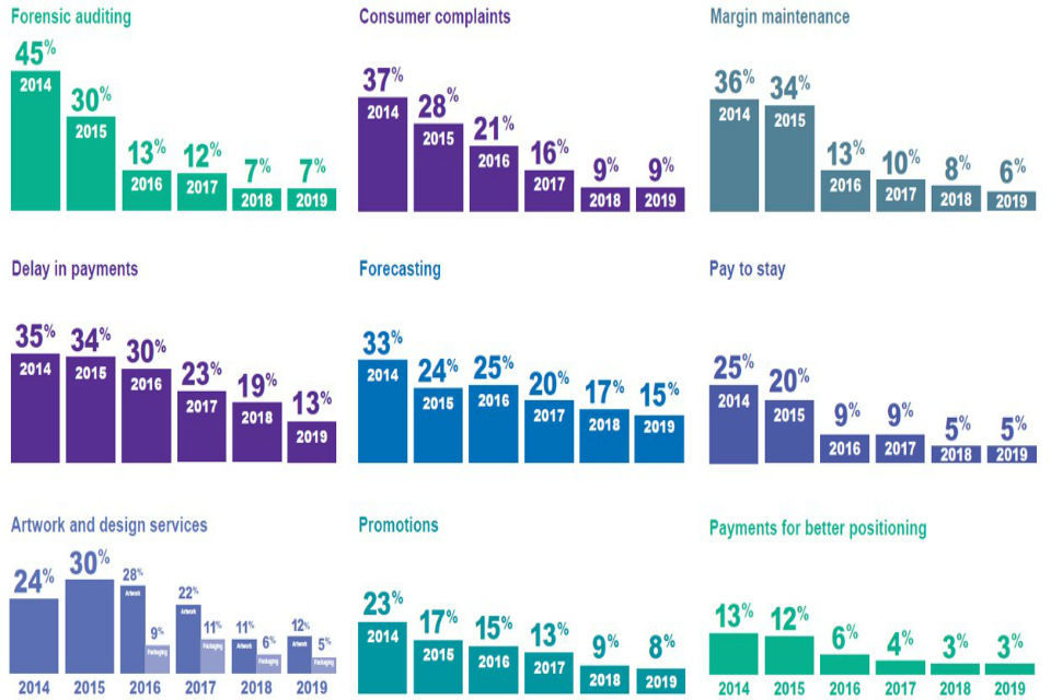 I have now carried out six annual surveys of suppliers and each year this has shown they report experiencing fewer Code-related issues. Where I have tackled a specific issue and worked with retailers on this, the issue is reported less by suppliers. I have set out a graphic at annex B which shows how suppliers have reported progress on each of these issues. This progress has continued year on year even as the number of retailers has increased and this year I had a record number of direct suppliers responding to my survey, over 1400.
