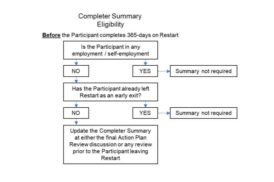 | 10 | Participant Completes the Restart Scheme | The Participant’s Restart Scheme participation ends after 365 Days | 8 & 9 |
