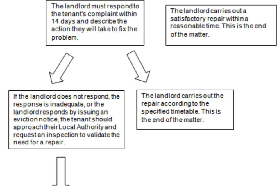 The landlord should then make arrangements to carry out the repair. In the vast majority of cases this will be the end of the matter. The full complaint process is set out below (figure1).