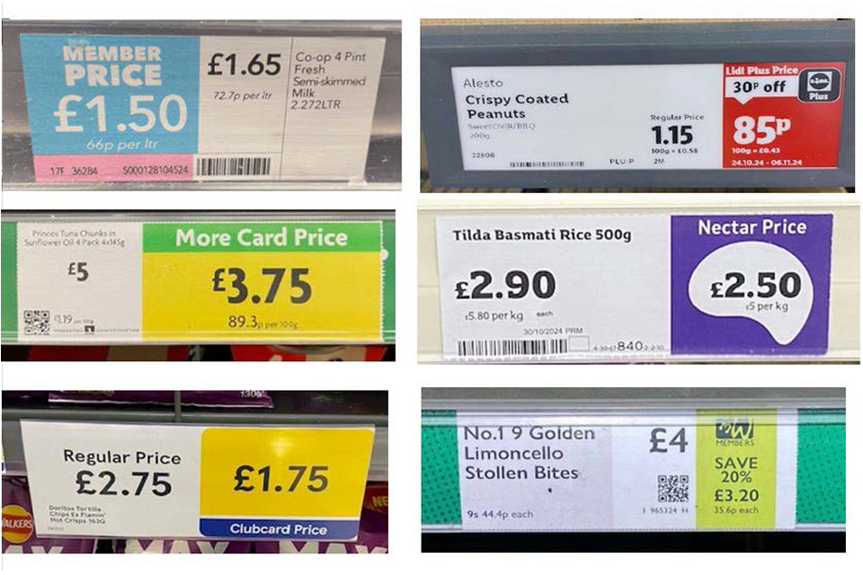 loyalty dual price promotions – where supermarkets offer a single product for sale at 2 prices: a lower price for their loyalty scheme members, and a higher price for shoppers who are not loyalty scheme members